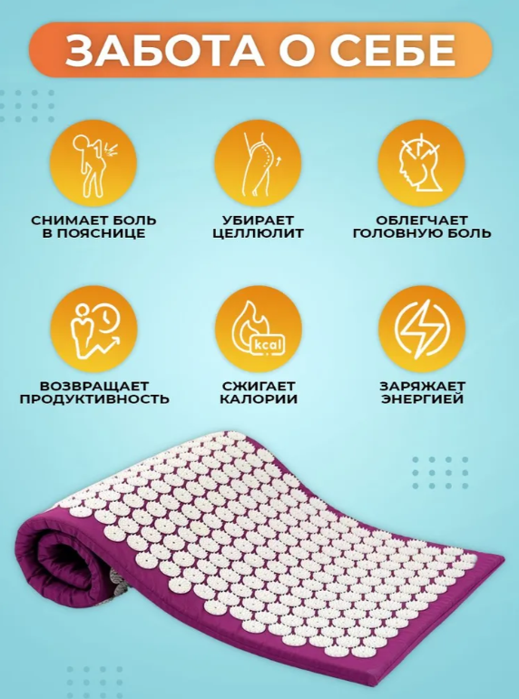 После вдавливания шипов мышцы расслабляются, ускоряются процессы метаболизма, отступает физическая усталость и появляется чувство бодрости. Таким образом, аппликатор положительно воздействует на нервные окончания в сухожилиях, суставах и около суставных поверхностях. В результате пациент не только может полноценно расслабиться и получить заряд бодрости, но и купировать болевой синдром в различных частях тела.