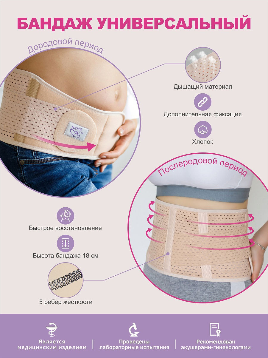 - Cнимает нагрузку с поясничного отдела позвоночника до и после беременности