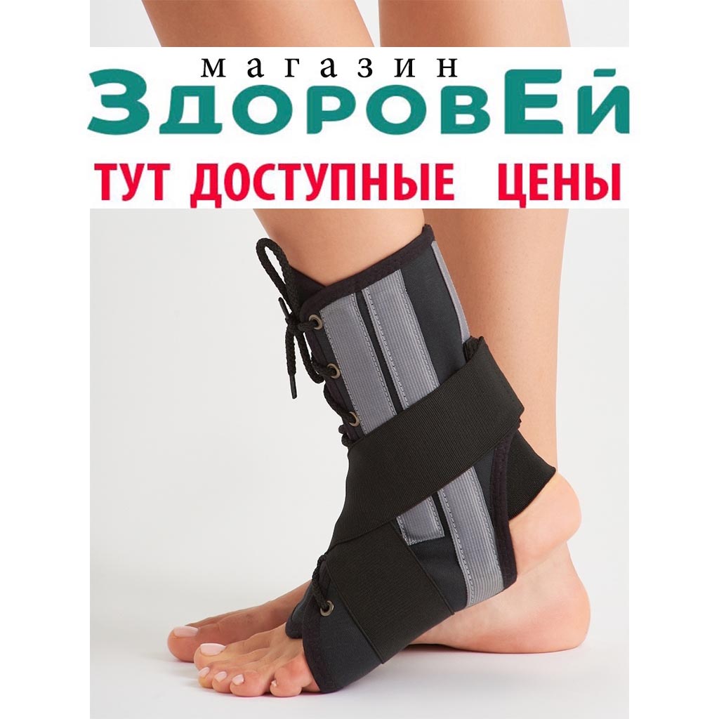 Бандаж на голеностопный сустав на шнуровке, с металлическими ребрами жесткости. Бандаж комфортно фиксирует голеностопный сустав. Применяется при вывихах и ушибах голеностопного сустава, при растяжениях, артритах и артрозах области, состояние после вывихов и подвывихов голеностопного сустава. Профилактика травматизма при занятиях спортом и физнагрузках. Комфортное надевание и ношение, выполнен из материала c высоким содержанием хлопка. Анатомическое прилегание по форме ноги. Дополнительная фиксирующая лента. 6 металлических ребер жесткости. Можно стирать. Перед применением обратитесь к инструкции. Товар является медицинским изделием, прошел лабораторные испытания и имеет сертификацию Росздравнадзора. Сделано в России.