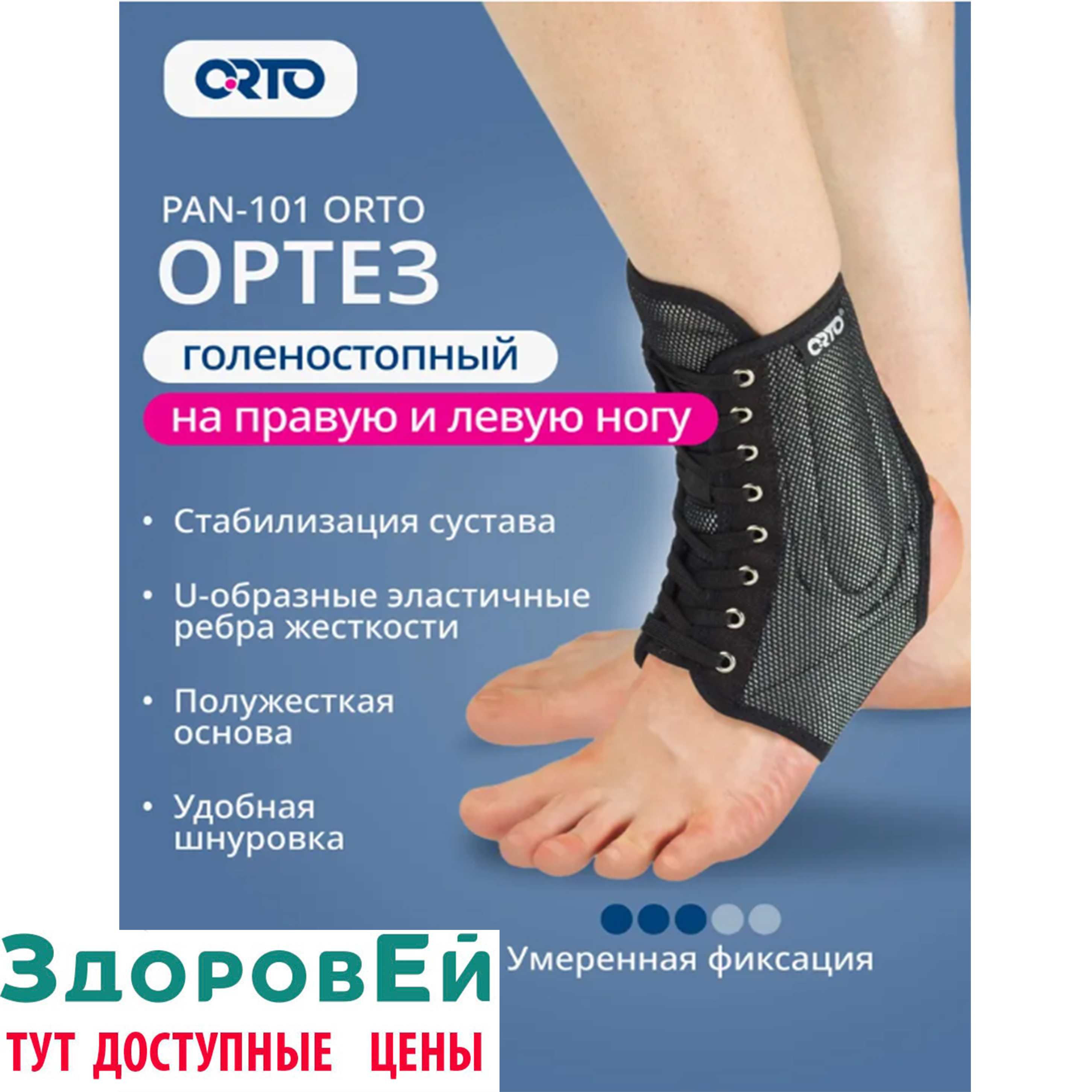 - симметричность ортеза позволяет использовать его как на правом, так и на левом голеностопном суставе;