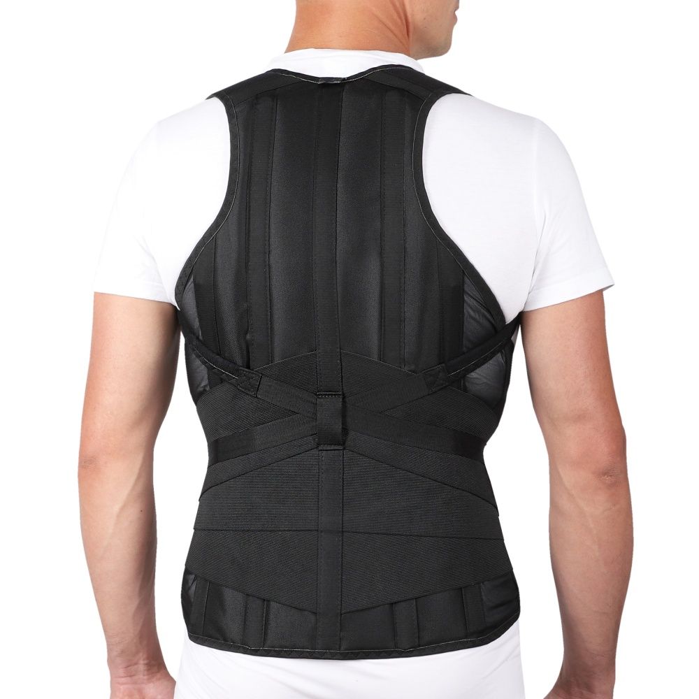 - На спинке 2 съемных металлических моделируемых ребра жесткости вдоль всего ствола позвоночника и 2 несъемных коротких пластиковых ребра жесткости, ребра обеспечивают плотную фиксацию и стабилизацию позвоночника