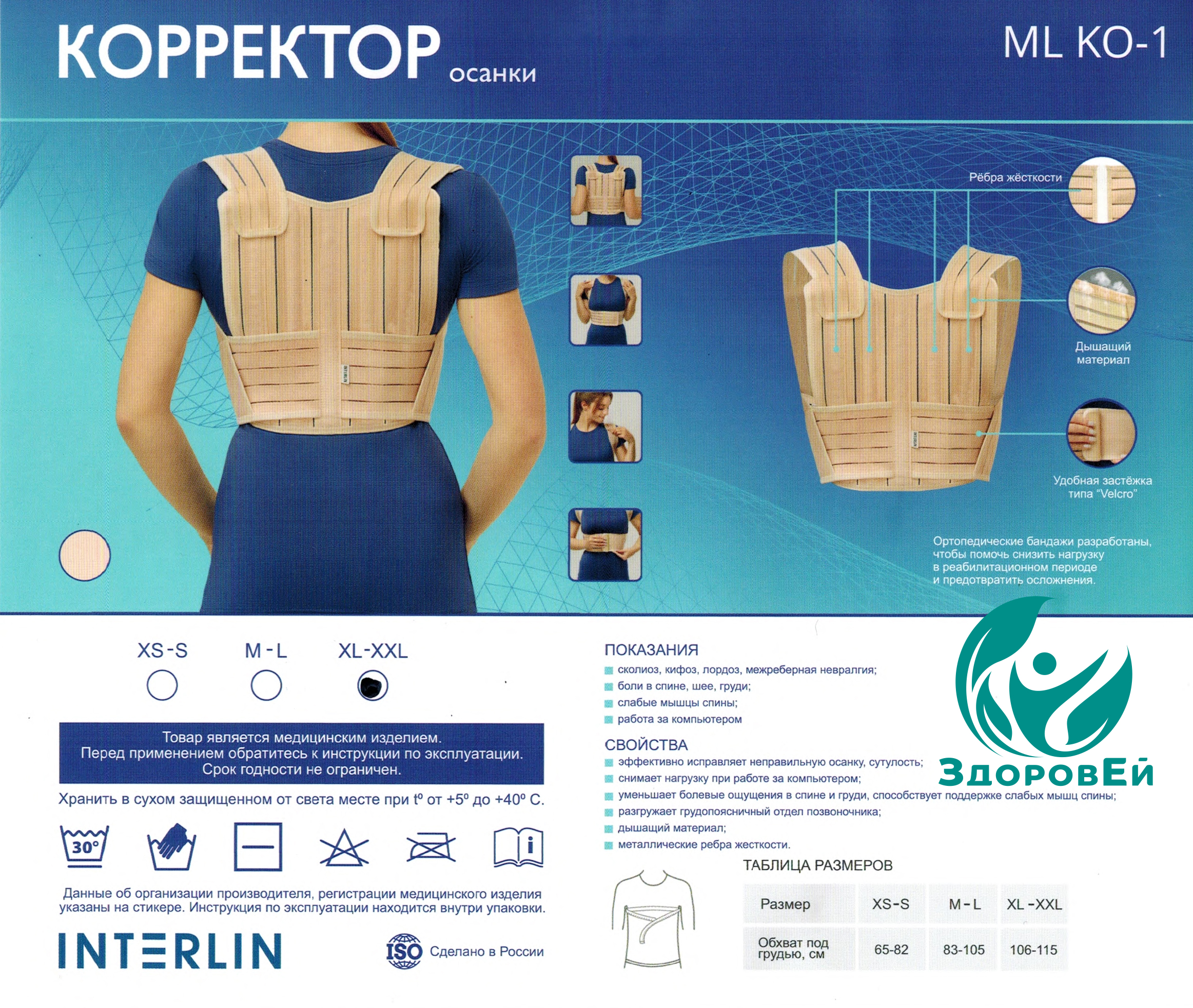 ML KO1, беж, р. M-L Корректор осанки, реклинатор. Интерлин
