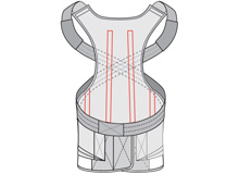 - Обеспечивает стабилизирующий эффект и умеренную фиксацию грудного и пояснично-крестцового отделов позвоночника, сохраняя необходимую свободу движений и не ограничивая грудное дыхание.