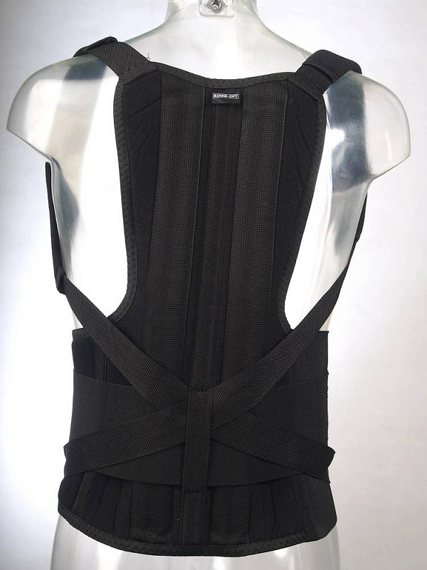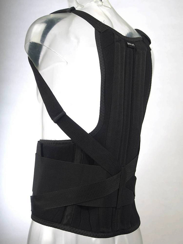 Реклинация и разгрузка позвоночника с укреплением мышц спины. Дозированная фиксация и разгрузка поясничного отдела позвоночника, коррекция осанки. Соединение шинами обеспечивает необходимую фиксацию позвоночного столба с выраженным действием непо-средственно на пояснично-грудной отдел и компенсацию нагрузок на позвоночник с одновременной коррекцией и выработкой правильной осанки. При нагрузках оказывает стабилизирующее действие на поясничный отдел, саногенетическое, микромассажное действие на подлежащие кожу и мышцы спины. Выраженный реклинирующий эффект грудного отдела позвоночника, корректирующий осанку и укрепляющий мышцы спины.