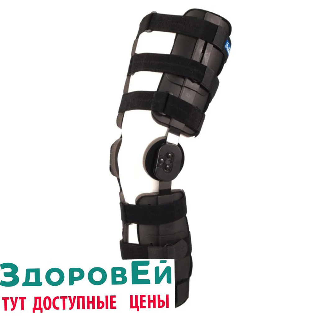 Фиксатор коленного сустава дозирующий объем движений выполнен из комбинированных материалов. Наколенник обеспечивает фиксацию и умеренную стабилизацию коленного сустава и надколенника, стабилизацию коленного сустава в вертикальной, фронтальной и сагиттальной плоскостях. Оказывает умеренную компрессию, микромассажное и тепловое воздействие. С помощью дозатора (угломера) задаются параметры движений при разработке контрактур и ограничений коленного сустава смешанного генеза. Также возможно использование как транспортной шины и послеоперационного тутора.