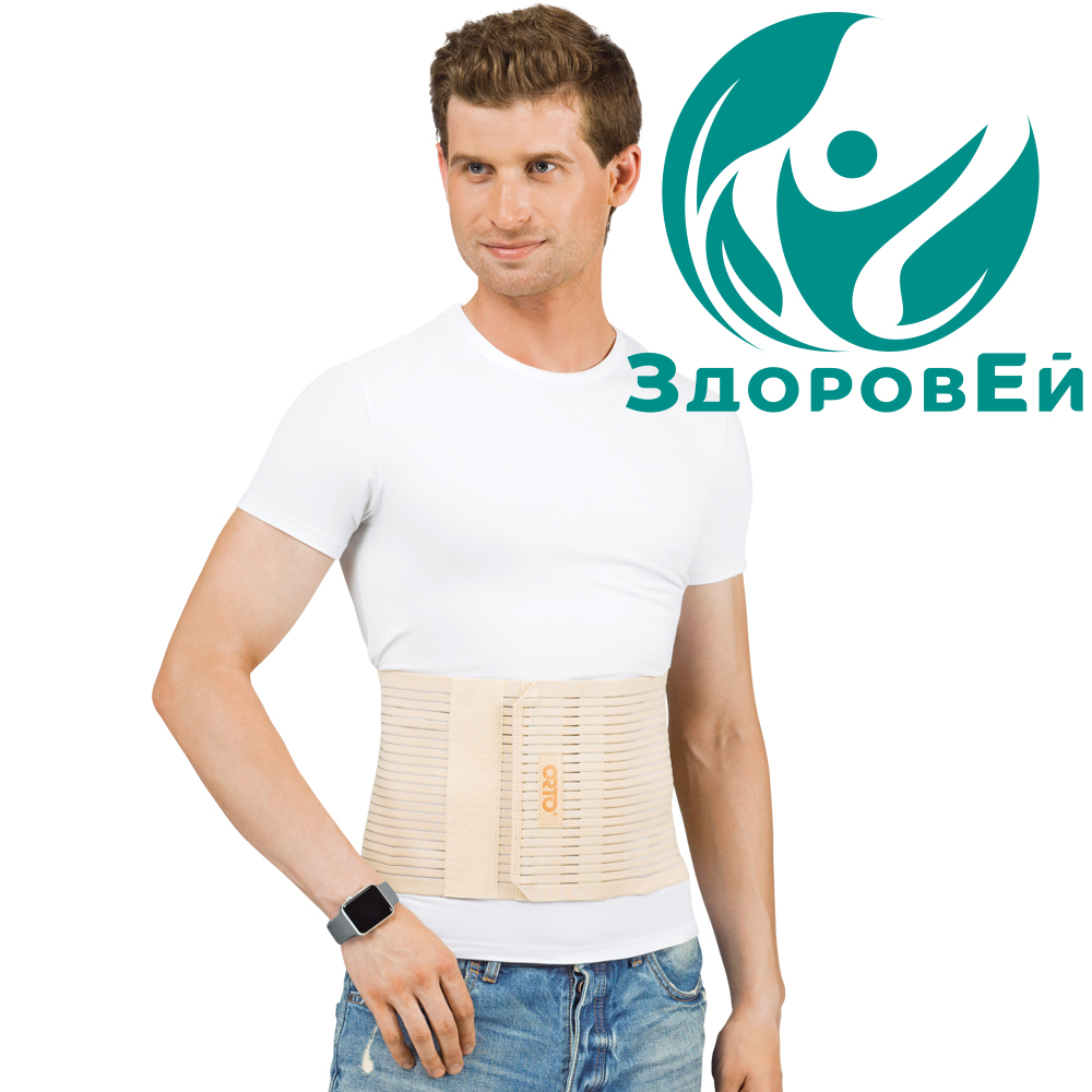 Абдоминальный ортез с разъемной основой из эластичного материала, форма которого адаптирована под мужской тип фигуры (верхний и нижний объемные размеры одинаковы). Разработан по технологии AirPlus: основа изделия изготовлена из эластичного материала разреженной вязки, застежка «Велкро» имеет дискретную конструкцию, гибкие планшетки предотвращают скручивание. Высота бандажа ― 24 см.
