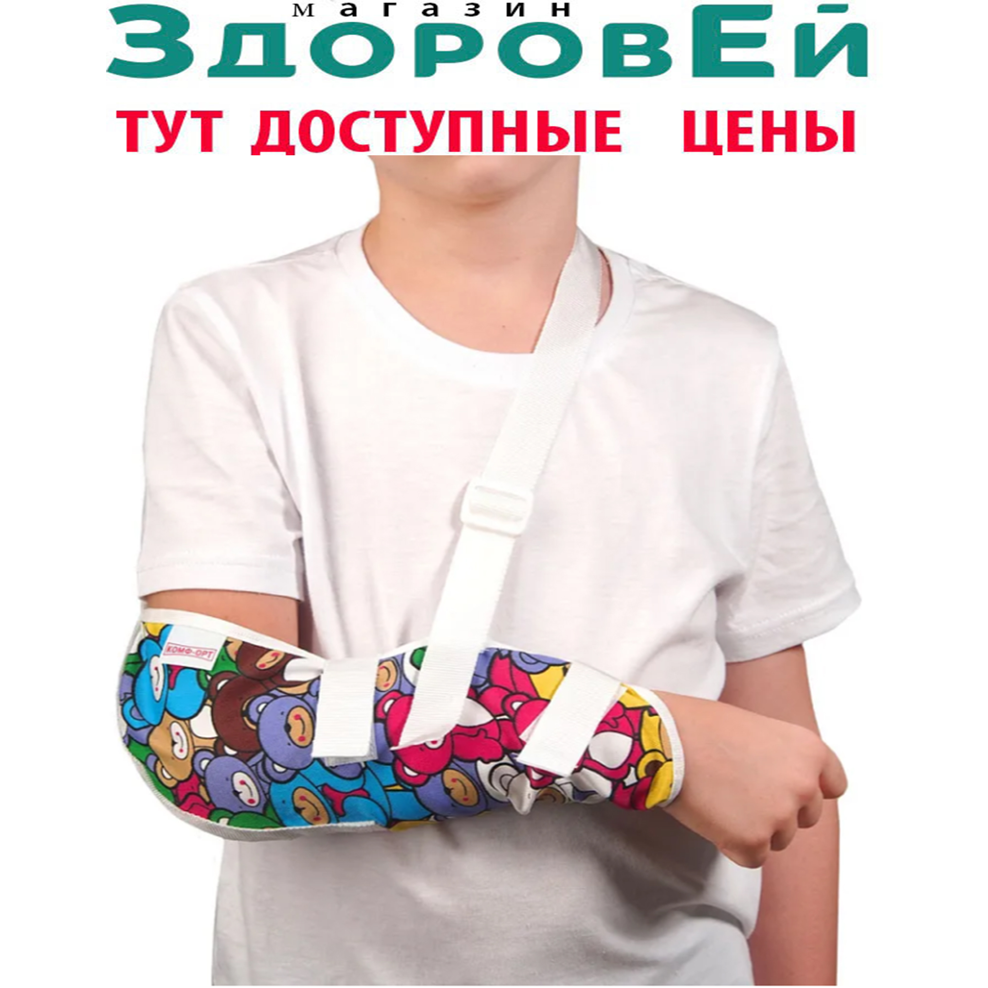 Универсальный детский бандаж для руки Комф-Орт К-411 - размер на рост ребенка от 80 см до 130 см.