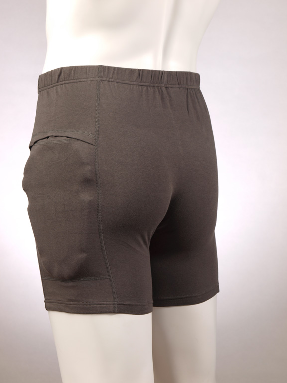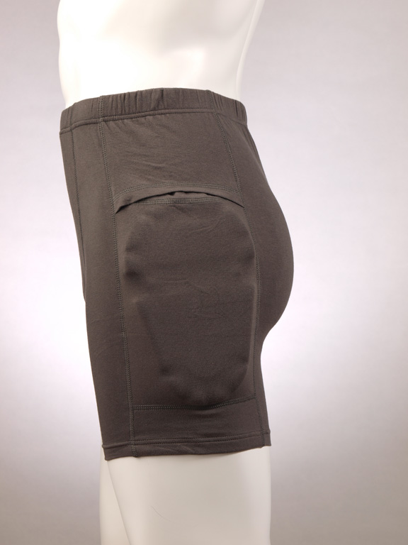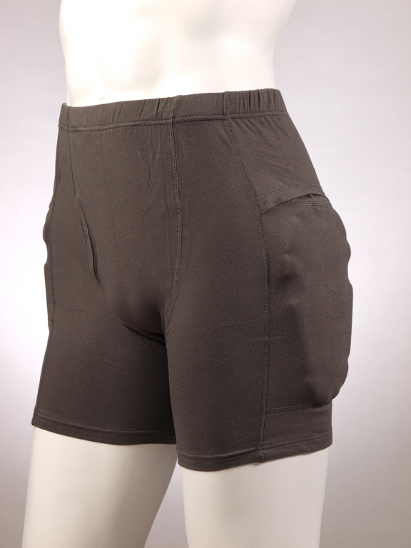 Такой протектор представляет собой эластичные шорты с углублениями для специальных упругих вставок в области тазобедренного сустава. При возможных падениях, угрозе перелома эти вставки смягчают удар, защищают места наиболее частых переломов.