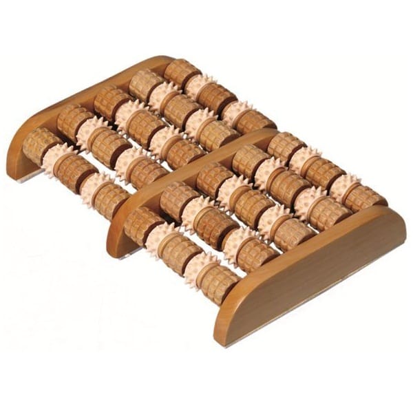 Массажер в виде «счет» изготовлен из древесины, часть роликов имеет покрытие из пластмассы. Благодаря достаточно большому размеру можно осуществлять массаж обеих стоп одновременно. Массажер имеет ролики с массажными элементами разной формы, благодаря чему можно выполнять разные приемы массажа.