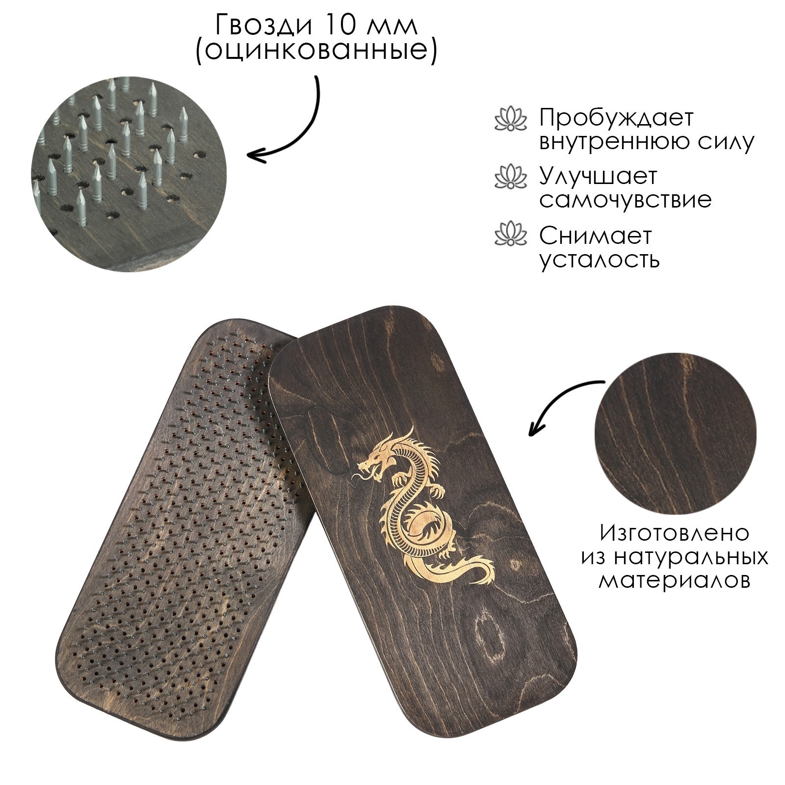 - Деревянная доска покрыта качественным маслом, что гарантирует долговечность использования. Чтобы уберечь доску с гвоздями для йоги от царапин, можно подложить коврик для йоги.