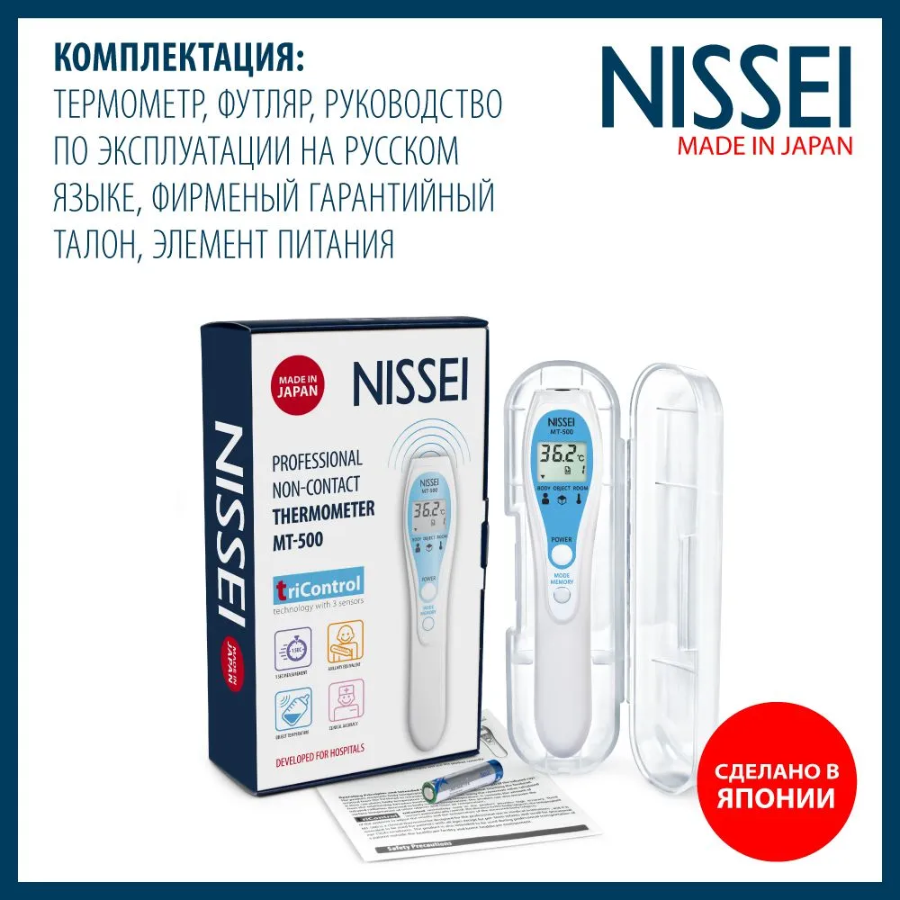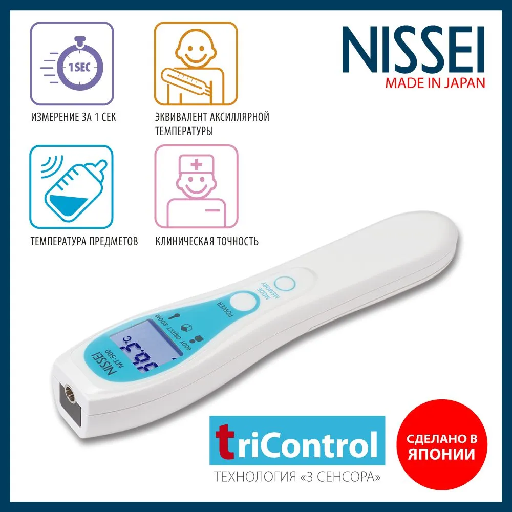 - TriControl: Технология 3-х датчиков обеспечивает высокую точность измерения за счет анализа условий измерения. Три встроенных датчика автоматически контролируют: – расстояние до объекта измерения; – температуру окружающей среды для корректировки результатов; – температуру измеряемого тела (объекта).