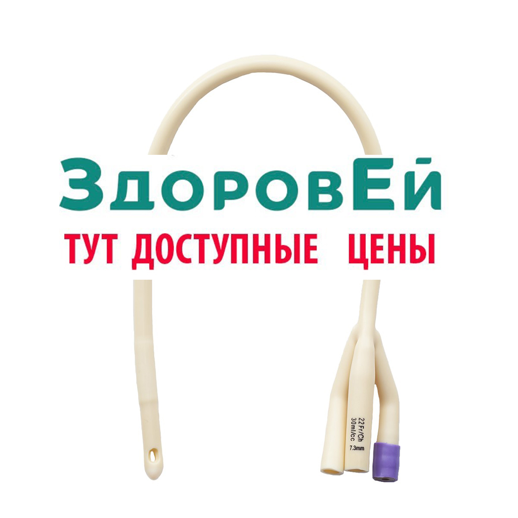 Катетер (зонд) трехходовой для длительной катетеризации мочевого пузыря. Размер по шкале Шарьера (Ch/Fr) 22: . Объем баллона 30 мл.