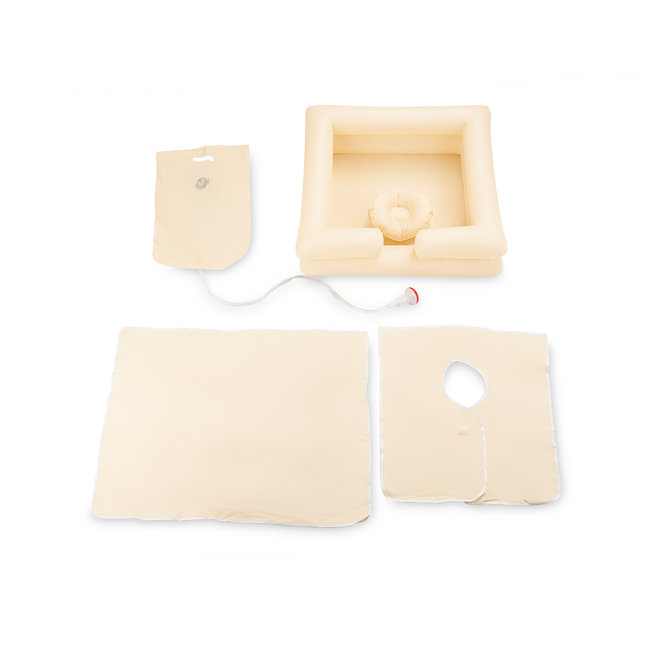Практичный и функциональный набор для мытья головы станет незаменимым помощником при уходе за лежачими пациентами. Включает в себя быстро надувную вместительную ванну с продуманным разъемом для фиксации шеи пациента, а также защитный фартук, подстилку и емкость для воды с удобной лейкой