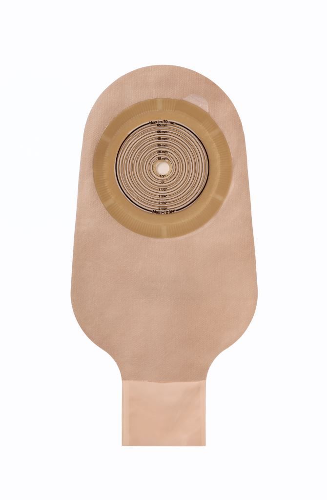 Калоприемник совмещает в себе стомный мешок и встроенную пластину. Оснащен удобным зажимом в нижней части мешка.