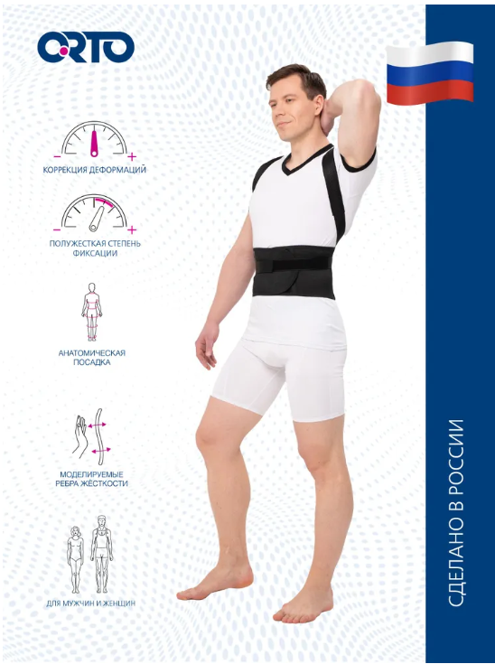 Назначение: Коррекция деформаций и полужёсткая степень фиксации грудного отдела позвоночника.