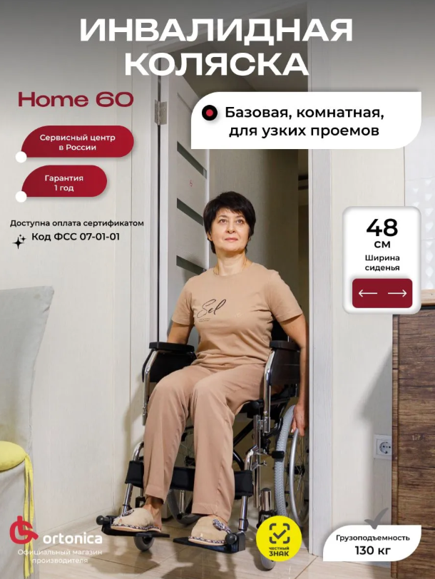 Кресло-коляска для инвалидов Ortonica Home 60 - это прекрасный выбор для передвижения в малогабаритных квартирах или на улице.