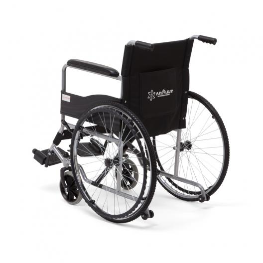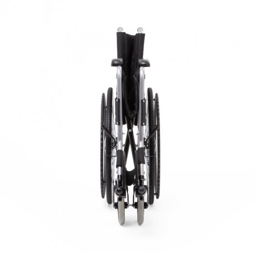 Колеса и тормоз: Передние и задние колеса цельнолитые, долговечные. Такие колеса предназначены преимущественно для использования в помещениях, однако они прекрасно демонстрируют себя в условиях открытого воздуха на твердых ровных поверхностях. Коляска снабжена рычагами стояночного тормоза с обеих сторон. Конструкция коляски предусматривает особые упоры, надавливая на которые можно приподнять передние колеса. Эта особенность значительно упрощает преодоление препятствий.