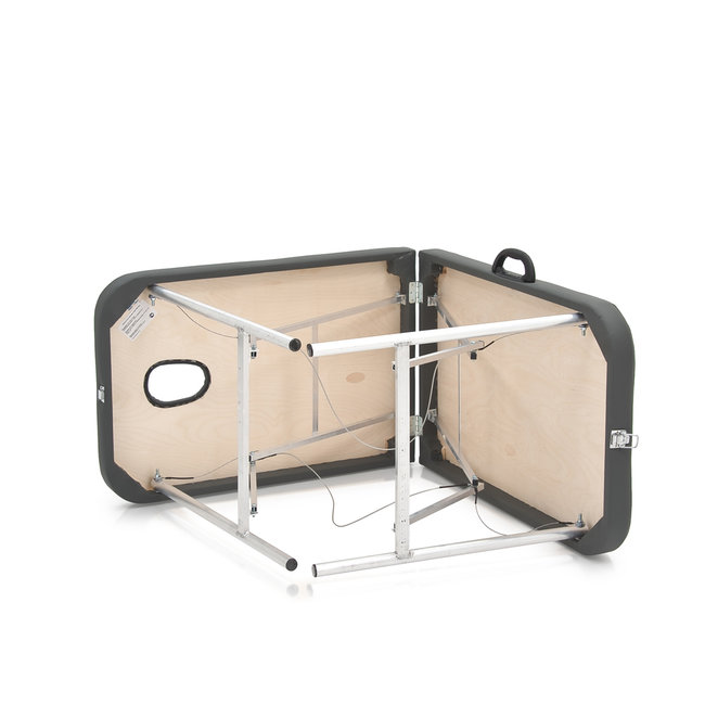 Двухсекционная складная кушетка снабжена системой тросов, что позволяет устойчиво и уверенно проводить различные процедуры. Каркас кушетки обит приятным на ощупь мягким кожзаменителем на хлопковой основе. А для максимального комфорта пациента на ложе предусмотрено отверстие для лица.