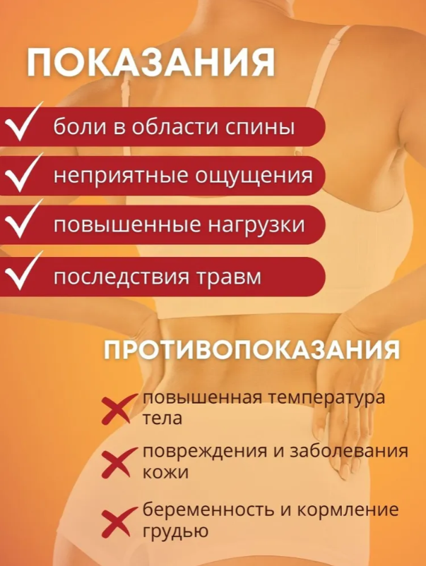 Противопоказания: Запрещено использовать при высокой температуре тела, на участках с повреждениями кожи и кожными заболеваниями. Беременным и кормящим женщинам следует воздержаться от использования аппликатора.