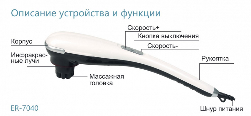 - Различные скорости массажа. Простая в использовании панель управления позволяет увеличивать или уменьшать желаемую интенсивность массажа