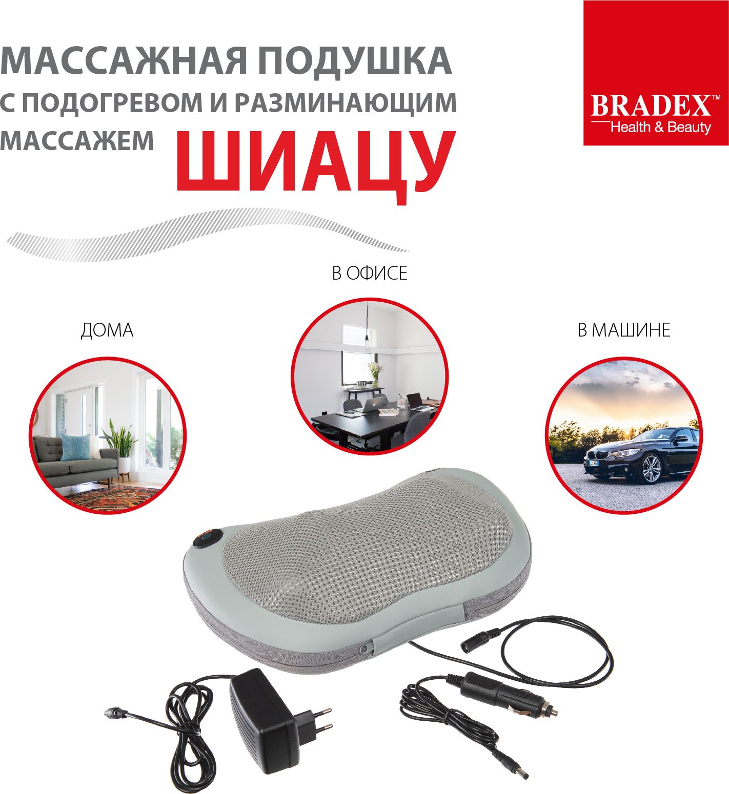 Стоите в затянувшейся пробке — проведите время с пользой — сделайте 10-минутный массаж. В наборе адаптер для работы от прикуривателя.