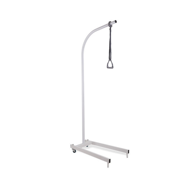 Стойка для подтягивания СПП-1 выполнена из металла, поэтому очень прочная. На основании имеются колеса для маневренности, а также устойчивые опоры для фиксации положения. Пациент подтягивается с помощью петли с удобной рельефной ручкой.