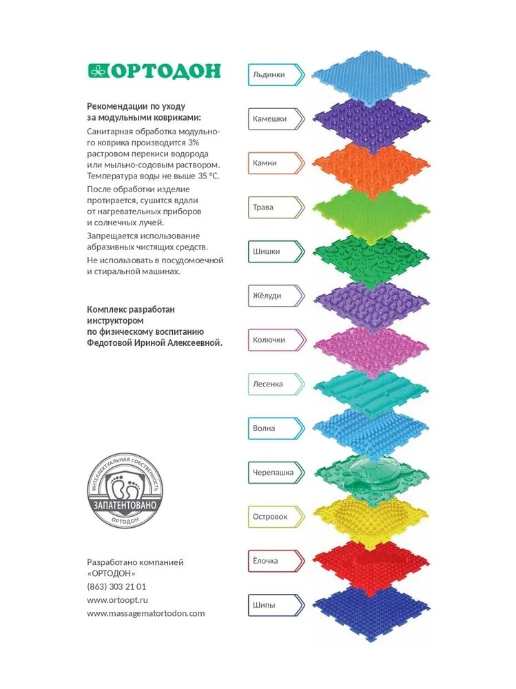 Модульные коврики ОРТОДОН «Малыш» в новых пастельных тонах идеально дополнят интерьер и будут радовать ваших малышей! Формируют интерес к систематическим занятиям физическими упражнениями. Совершенствуют двигательные умения и навыки ребёнка. Пастельные тона способствуют снятию эмоционального напряжения и помогают сконцентрироваться. Комплекс упражнений, разработанный инструктором по физическому воспитанию И.А. Федотовой, поставляется в каждом наборе.