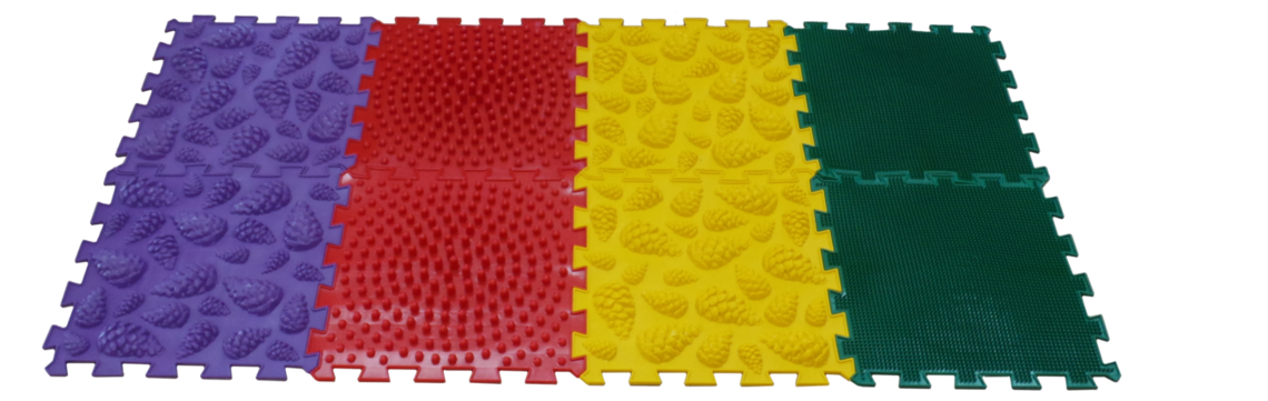 Модульное разноцветное исполнение ковриков позволяет собирать единую яркую дорожку для занятий разной длины и ширины. Дополнительно коврики помогают развивать логическое мышление, мелкую моторику и цветовосприятие.