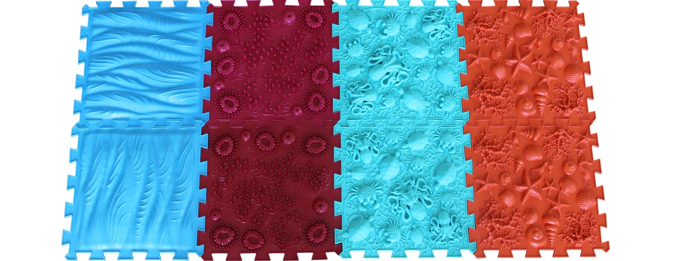 Уникальный МИКС идеально сочетает в себе жителей морских глубин, мягкие бурлящие волны, фауну морского дна и необычные формы морского рифа. МИКС состоит из поверхностей мягкой и средней жёсткости, что гарантирует не только качественную тренировку мышц стопы и голени, но и развитие мелкой моторики и мышления.