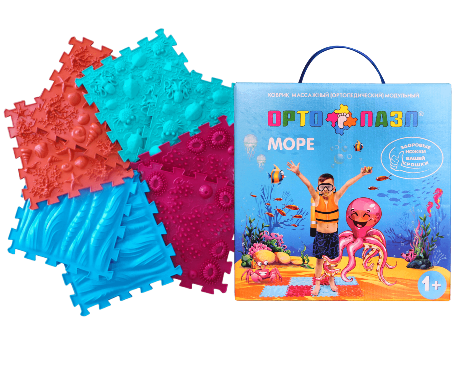МИКС "Море" позволяет погрузиться в атмосферу морей и океанов. Ракушки и кораллы, осьминоги и морские звезды, крабы и водоросли оставят неизгладимое впечатление вашего малыша во время занятий на массажном коврики МИКС "Море".