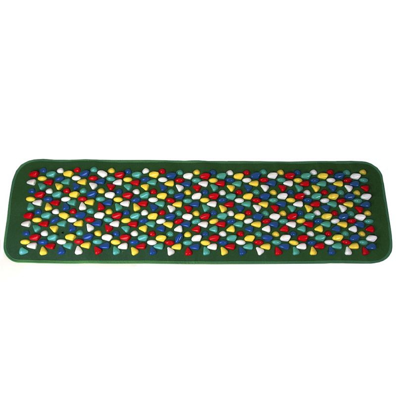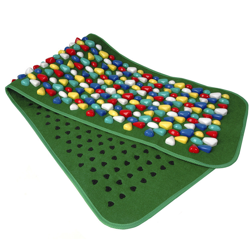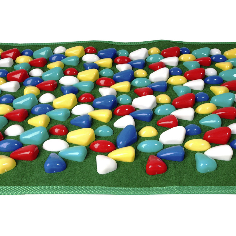 Элементы коврика, иммитирующие морскую гальку, стимулируют рецепторы, находящиеся на подошвенном отделе стопы. Благодаря этому коврик помогает улучшить тонус мышц и связок стопы, способствует формированию физиологически правильного свода стоп, что крайне важно в детском возрасте.