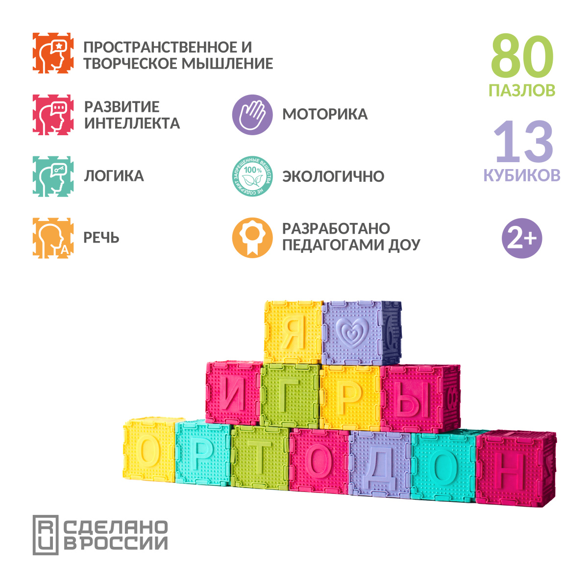 «Умные кубики» ОРТОДОН – уникальное пособие для развития интеллекта. Набор состоит из 80 мини-пазлов с двух сторон которых размещены символы из 6 обучающих разделов:
