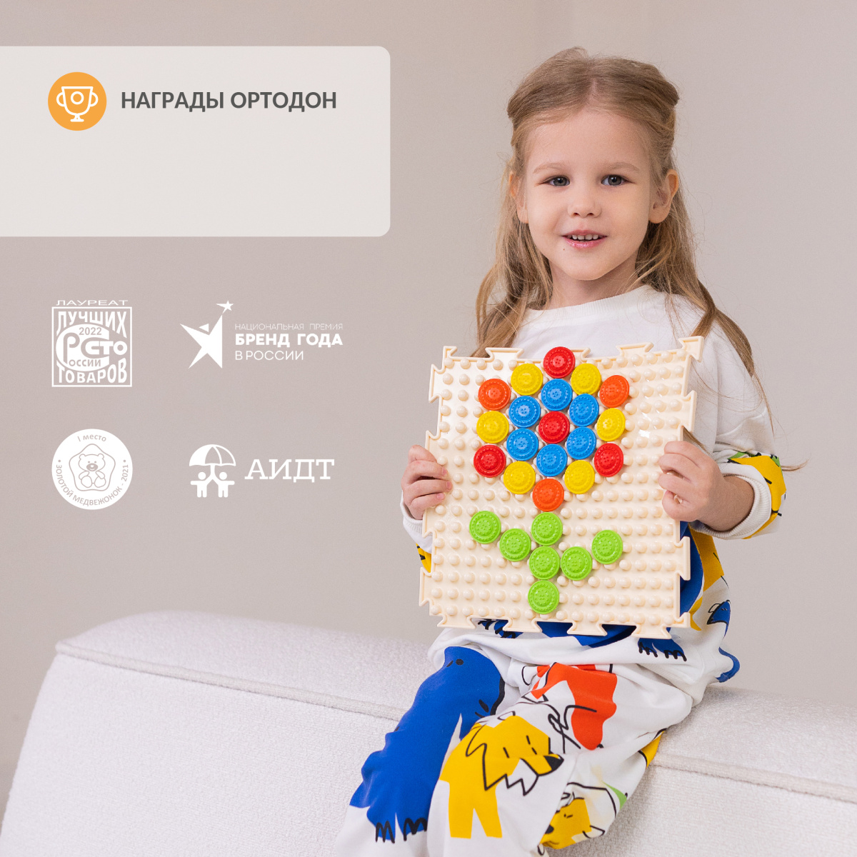 - Модульный коврик «Шипы» служит игровым полем мозаики и соединяется с любыми ковриками ОРТОДОН.