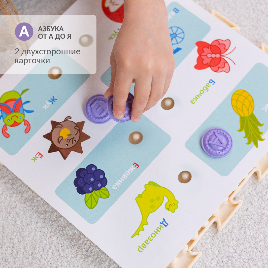 - 2 карточки с двухсторонней печатью для знакомства с азбукой,