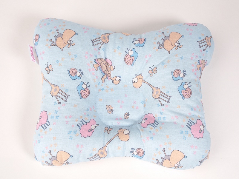 Подушка К 800 младенческая выполнена в форме бабочки. Наполнителем изделия является синтетическое гипоаллергенное волокно. Конструкция подушки гармонично учитывает все анатомические и физиологические особенности шейного отдела и затылочной области головы младенца. Это воздействие обусловлено упругими свойствами материала наполнителя и сложной геометрией подушки. В конструкции также предусмотрен специальный чехол из хлопчатобумажной ткани.