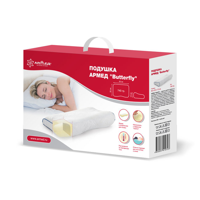 Подушка удобной формы со специальной выемкой для плеча и с углублением для головы отлично подходит для любителей спать на спине.