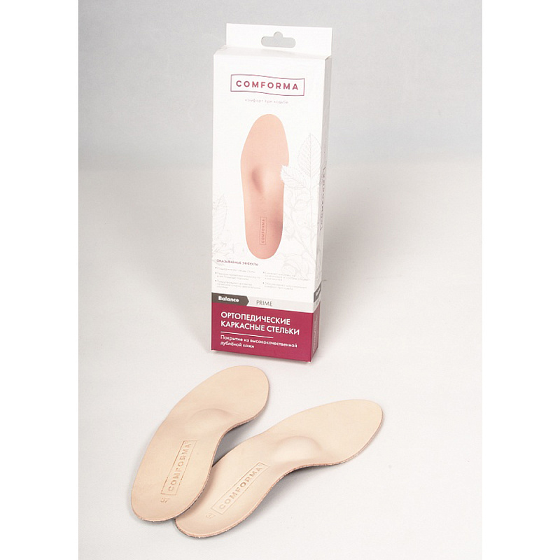 При изготовлении стелек Comforma используются только высококачественные материалы. Благодаря особой технологии обработки кожи, изделия обладают высоким уровнем влаго и воздухообмен и обеспечивают максимальный комфорт при использовании. Верхний слой из дублёной кожи толщиной 1,5 мм придаёт изделию дополнительную прочность и износостойкость. Оказываемые эффекты: