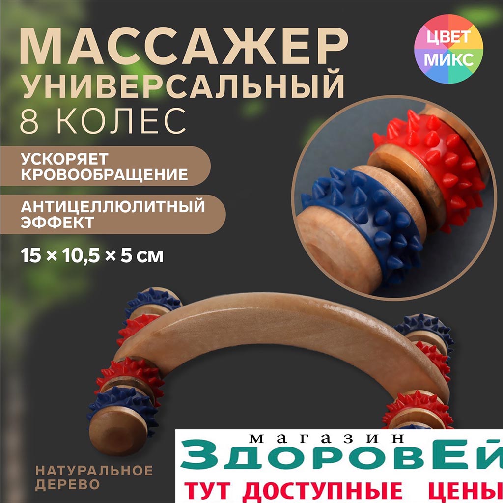 Роликовый массажёр разомнёт и разогреет мышцы, улучшит кровообращение и приведёт кожу в тонус. Дерево приятно касается тела, а инструмент удобно лежит в руке и прослужит вам очень долго.