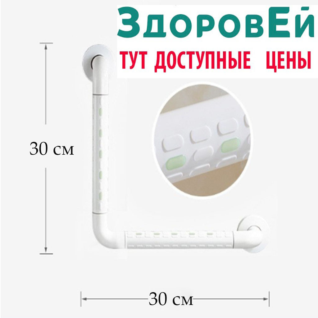Поручень пластик/метал угловой 30х30 см белый Здоровей. Возможна оплата ЭС ФСС
