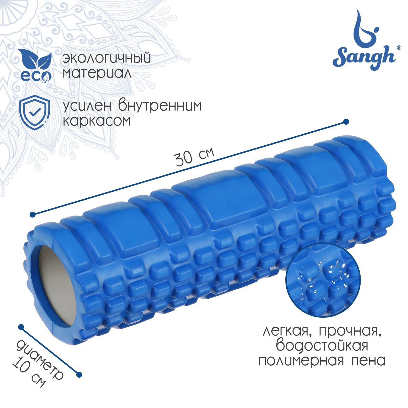 Роллер для йоги 30 х 10 см,  массажный, цвет синий