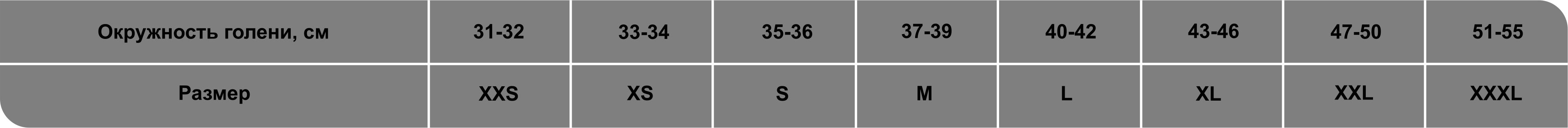 Таблица размеров