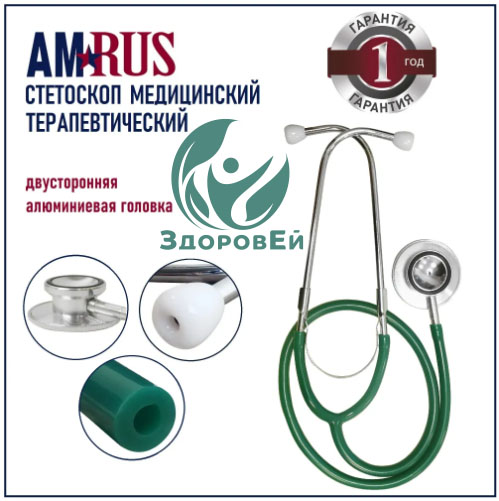 Amrus 04-AM400 — Терапевтический стетоскоп, предназначенный для аускультации сердца, легких, сосудов, желудочно-кишечного тракта у взрослых пациентов. Модель с двусторонней облегченной алюминиевой головкой с надежным поворотным механизмом для безупречной звуковой чувствительности.