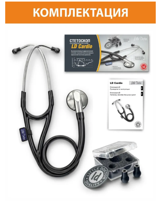 Стетоскоп LD Cardio — это высококачественный кардиологический стетоскоп для врачей, который позволяет производить аускультацию во всем диапазоне частот у взрослых и детей. Преимущества данного стетоскопа:— Специальная геометрия головки и материал мембраны позволяют акцентировать внимание при аускультации в среднем диапазоне— Частотная характеристика стетоскопа в диапазоне 200-500 Гц имеет уникальную для стетоскопов этого класса чувствительность— Прибор имеет высококачественную акустическую систему передачи звука от мембраны до ушей врача.