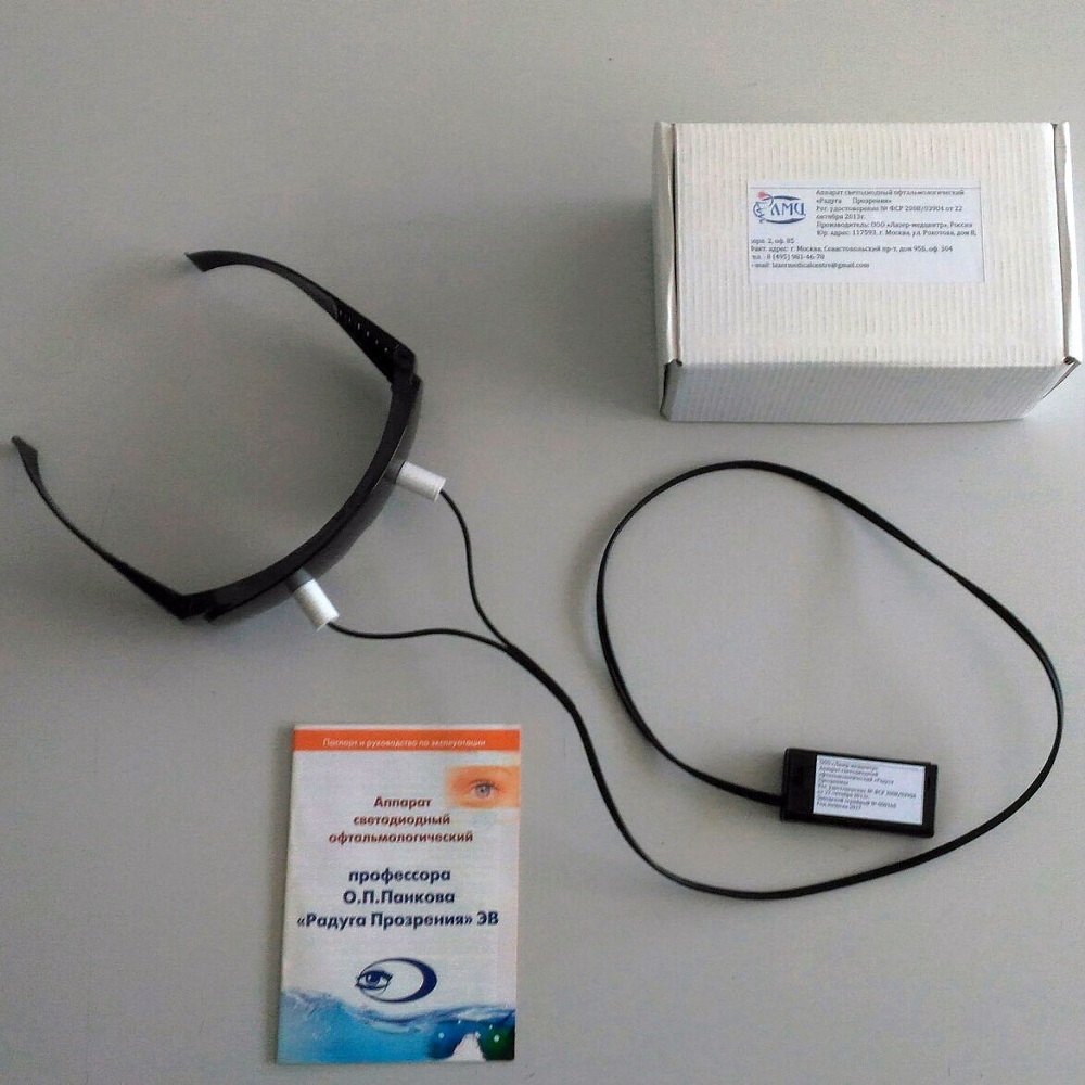 Комплект поставки: Аппарат светодиодный офтальмологический профессора О.П. Панкова «Радуга Прозрения» 1шт; технический паспорт 1шт; упаковочная коробка 1шт.