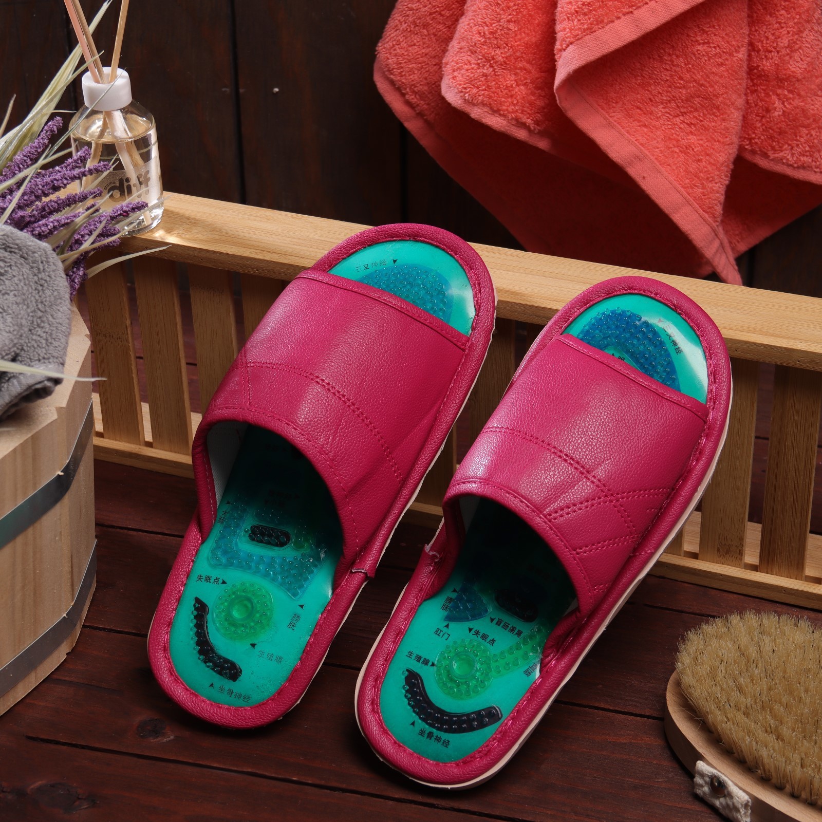 Массажные тапочки (массажные шлепанцы) с магнитами и турмалином - терапевтическое средство, обеспечивающее релаксирующий массаж стоп в домашних условиях. Идеальное решение для тех, кто страдает варикозным расширением вен, плоскостопием, нарушением кровообращения, костными шпорами и другими заболеваниями нижних конечностей. Стельки тапочек (массажные тапочки здоровье) обладают уникальной конструкцией, стимулирующей биологически - активные точки, расположенные на ногах. Применение массажных тапочек оказывает общее профилактическое и оздоравливающее действие на организм, способствует укреплению иммунитета, эффективному выведению шлаков, снятию болей и мышечной усталости, качественному улучшению сна и повышению тонуса. Износостойкая противоскользящая подошва. Тапочки массажные на ногу с высоким подъемом, на широкую ногу. Длина подошвы тапочек 25 см. Показания к применению рефлекторных массажных тапочек: бессонница, упадок сил, стресс, хронические отеки ног.