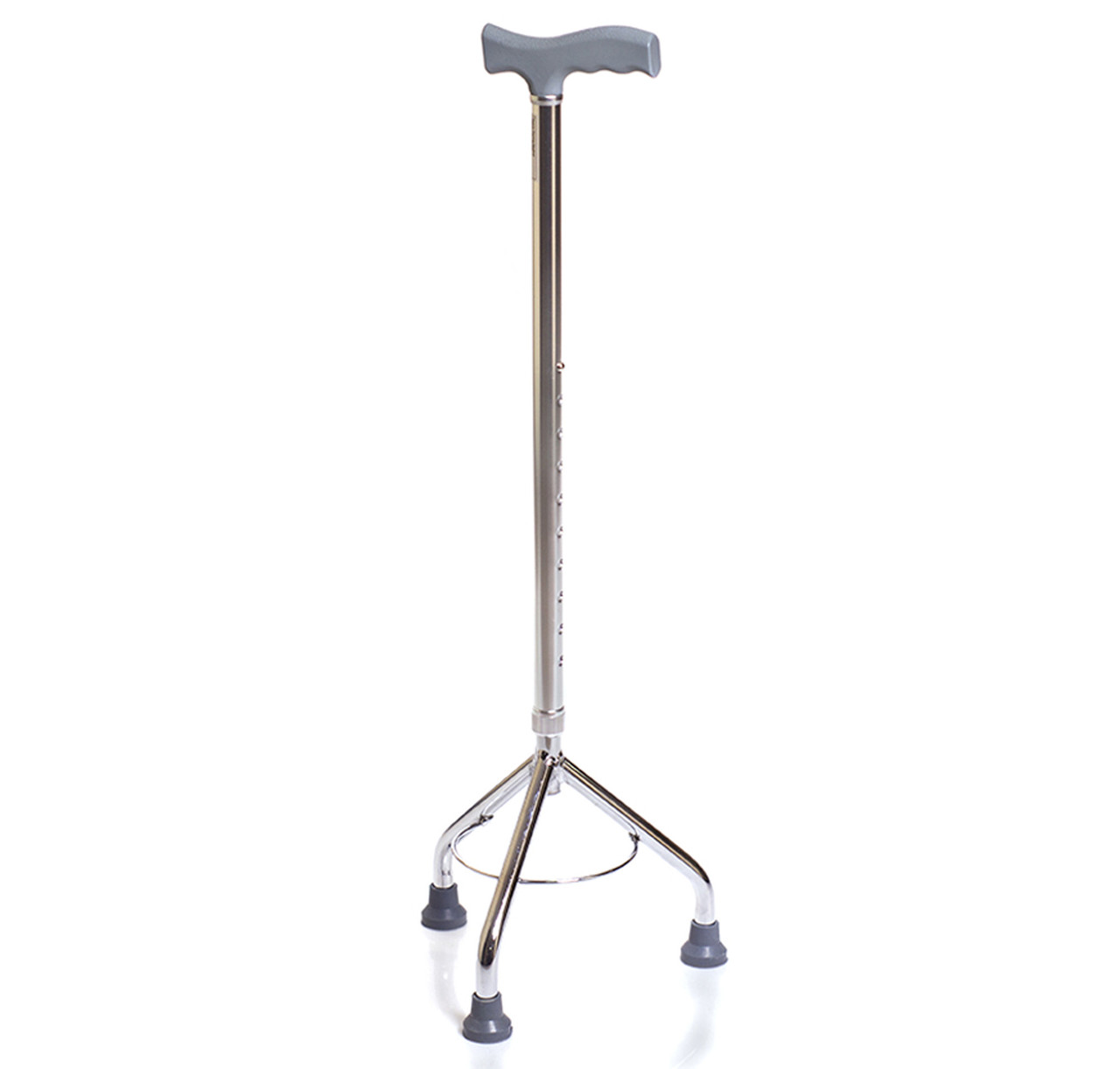 Трость 3-х опорная Ortonica TM 606 используется для облегчения передвижения людей с малой и средней степенью нарушения координации движений, оснащена устройством против скольжения посмотреть весь каталог: Трости и опоры Особенности: телескопическая с кнопочной фиксацией; хромированная, изготовлена из высокопрочного алюминиевого сплава; рукоятка имеет Т-образную форму, выполнена из прочного, не скользящего пластика; форма опоры - трапециевидная с 3-мя упорами; трость оснащена прочными нескользящими резиновыми насадками; обеспечивает надежную поддержку во время ходьбы; подходит для использования как на улице, так и в домашних условиях; трость оснащена устройством против скольжения (специальные резиновые наконечники). Технические характеристики: регулировка высота трости: см от 74 до 97 в 10 положениях; длина опорной части поручня: 13 см; вес, кг 0,8; максимальная нагрузка, кг 100.