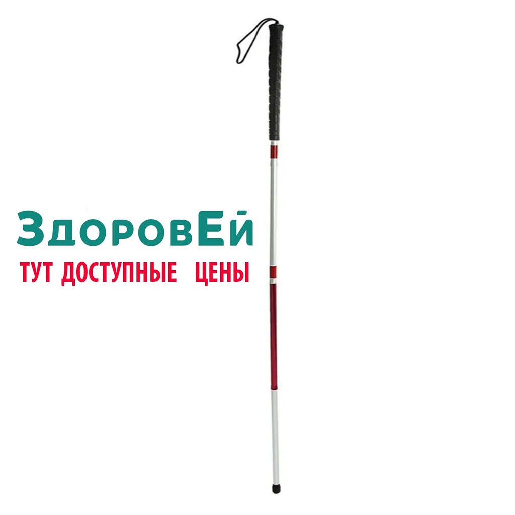 Опора тактильная предназначена для слепых или людей с большими нарушениями зрения. Корпус состоит из четырех алюминиевых секций, одна из которых имеет светоотражающий элемент. Рукоятка с рифленой поверхностью и текстильным ремешком предотвращает скольжение ладони. Пластиковый наконечник у основания служит для сцепления с гладкой поверхностью. Опора легко складывается на четыре секции. В комплекте идет чехол для хранения.